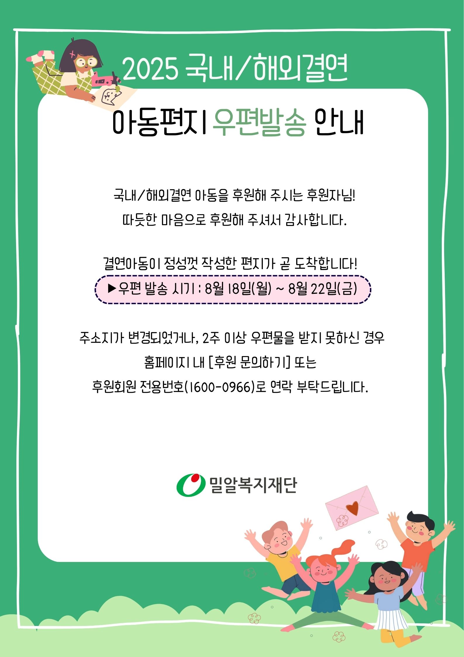 후원회원 전용번호 1600-0966 (평일 AM 9:00 ~ PM 6:00)